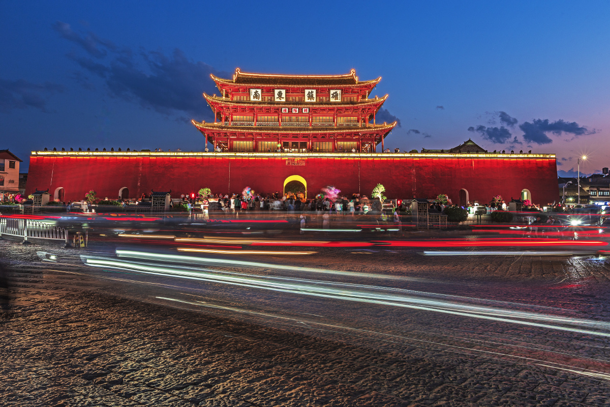 2024年5月3日傍晚摄于云南省红河州建水古城朝阳楼,(0206-3)拍摄的是云南省红河州建水古城朝阳楼的夜色。#旅游##旅行##红河州##建水##云南省##朝阳楼##东门##迎晖门##建筑##古建筑##城楼##古城楼##天空##云##夜色##夜景##慢门拍摄##车轨##光轨##城市##风光##风景##夜晚##古城##地标建筑##地标##旅游目的地##著名景点#